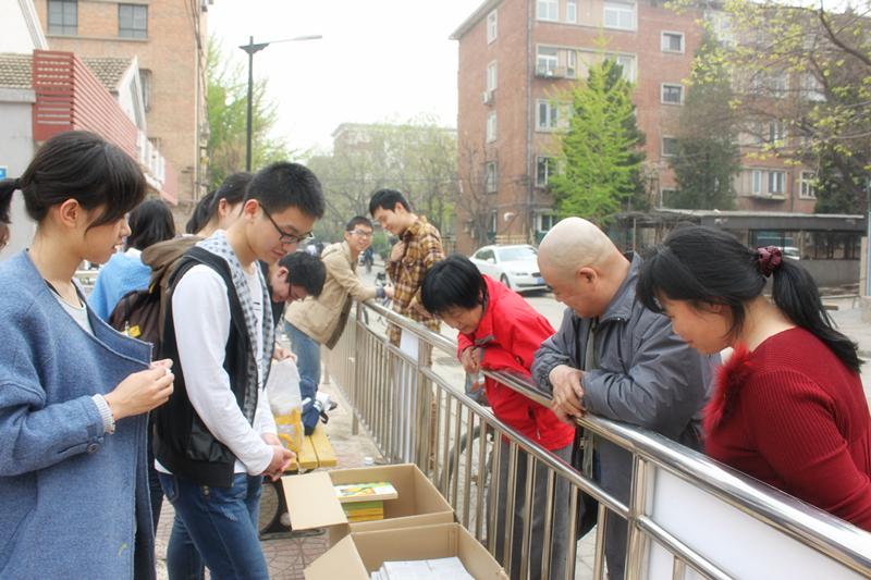 下午3点,在活动举办地点,工作人员将作为奖励的生活用品整齐摆放,并张贴了宣传海报。活动开始后不久,社区居民便陆陆续续地携带着自家的废弃刊物前来兑换。现场的志愿者们热情地递送旧读物、挑选兑换礼品,并且亲切地同居民们交谈,向他们说明本次活动的目的和意义,号召大家培养环保意识,开展绿色生活。