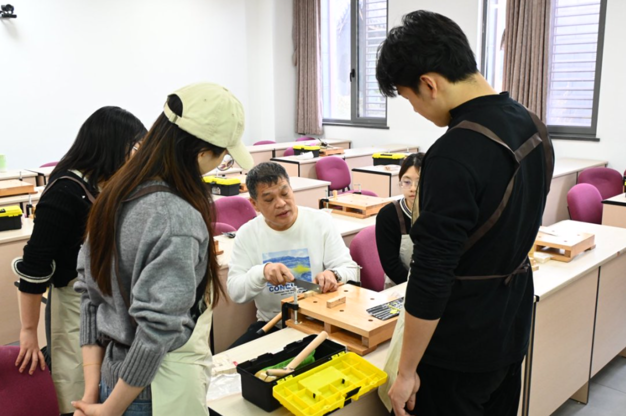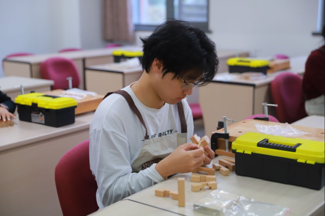 为弘扬中华优秀传统文化,推动传统文化融入课程体系,2025年11月29-30日,亚洲电竞博彩网站导航 开展榫卯工艺劳动教育课程。榫卯工艺是中华优秀传统文化的重要组成部分,不仅体现了古代工匠的智慧,还承载了丰富的文化内涵。榫卯工艺劳动教育课程由黄左辰老师首讲,通过系统讲授与动手实践,引导学生走近传统木作技艺,理解非遗文化内涵,培育劳动精神与工匠品质。