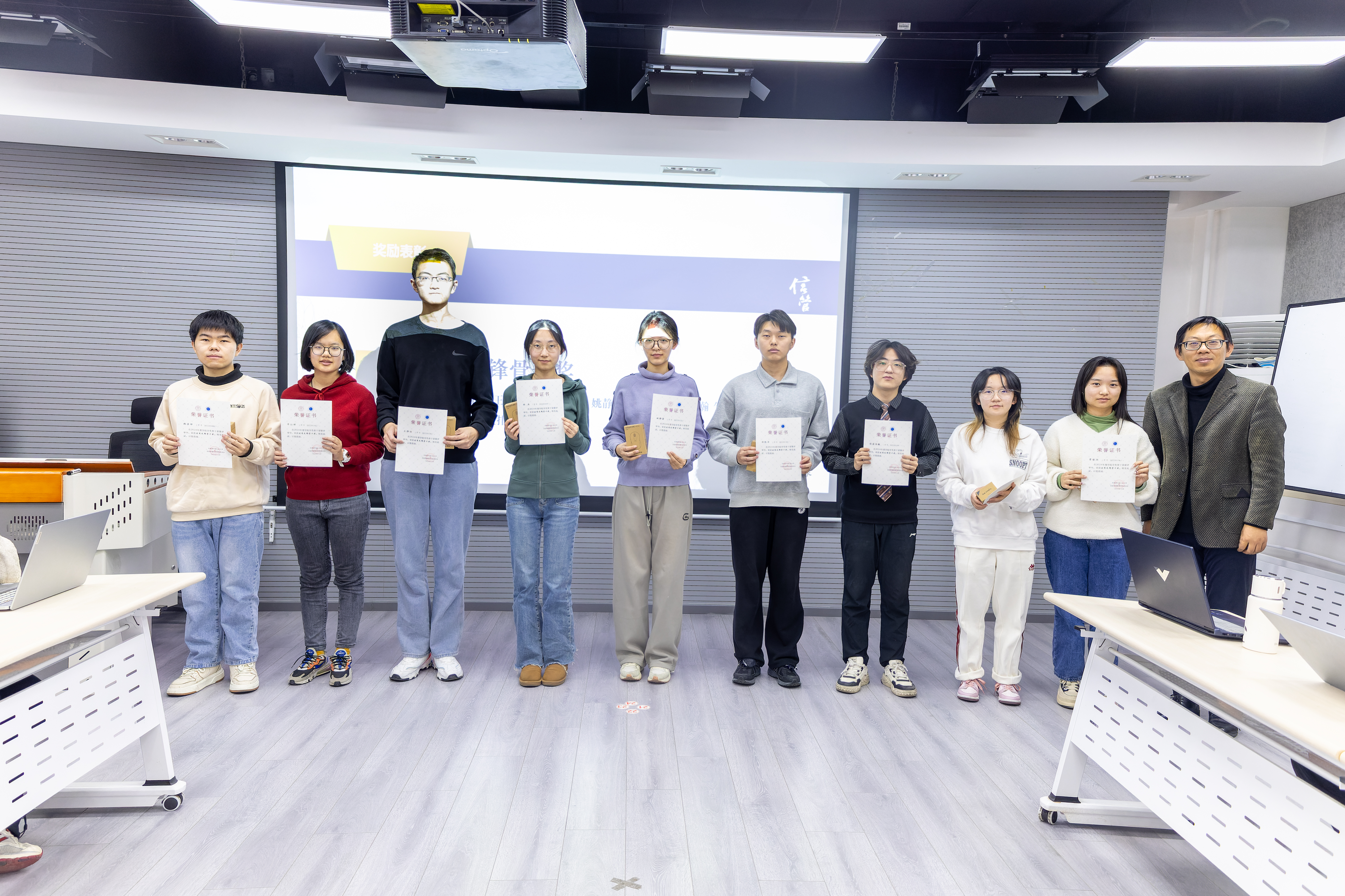 表彰仪式上,韩曙光和海薇代表亚洲电竞博彩网站导航 为获奖同学颁发荣誉证书及奖品。其中,10名同学获“优秀先锋骨干”称号,5名同学获“最具成长力骨干”称号。