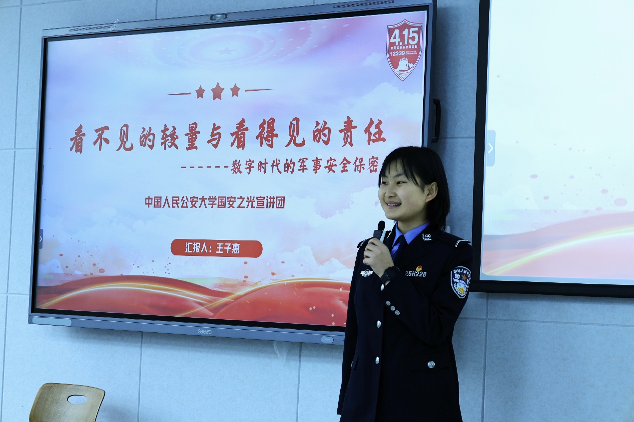 公安大学国家安全教育宣讲团成员围绕军事安全与网络安全开展国家安全教育宣讲,生动阐释了国家安全与每个人息息相关,号召青年党员要不断强化国家安全意识。