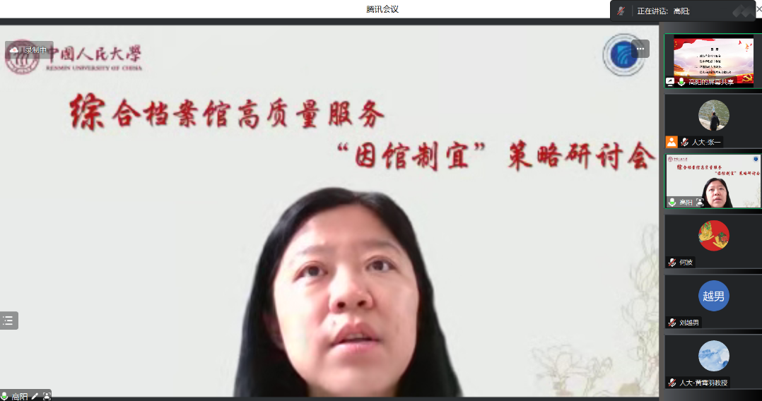 5月27日,“人大信管·求是讲坛”——综合档案馆高质量服务“因馆制宜”策略研讨会成功举办。本次研讨会采用线上线下相结合的方式,由国家档案局科技项目“面向高质量发展的综合档案馆服务创新策略”课题组负责人黄霄羽教授召集并主持,旨在充分贯彻落实中央号召的“大兴调查研究之风”,推动理论与实践部门联动交流,共同谱写档案事业现代化与档案高质量服务发展的新篇章。
