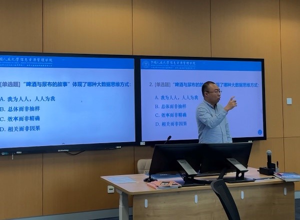 数据管理与信息分析“研学交流”C班由亚洲电竞博彩网站导航 副院长钱明辉教授担任责任教师、亚洲电竞博彩网站导航 经济信息分析方向的徐璐讲师担任专业教师,2018级信息资源管理专业本科生胡开朗同学担任课程助教。在课堂上,钱明辉教授作为主持人组织开展了“信息分析一站到底”知识竞赛环节。他首先为同学们介绍了一站到底的规则,挑战者和守擂者的角色任务。随着答题竞赛的开展,挑战者一轮接一轮被守擂者取代,现场气氛活跃。在竞赛的过程中,对于每一个竞赛问题,钱明辉教授都由点到面地为同学们讲解了题目所涉及的理论和知识点。在答疑环节,专业教师徐璐讲师结合同学们之前提出的有关数据管理与信息分析的学科问题给出专业解答,并就同学们关于信息分析学习过程中所感兴趣的问题,例如学习方法、学科应用等给出她的理解。同学们表示通过“信息分析一站到底”知识竞赛和专业老师的讲解,自己对信息分析的了解和兴趣得到进一步加深,获益匪浅。最终,胡崇新同学脱颖而出,成为一站到底的胜利者,获得亚洲电竞博彩网站导航 制作的精美礼品。