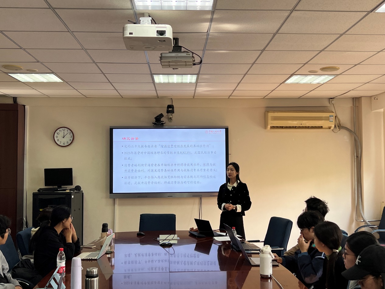 本次沙龙主题为“平台‘遥指杏花村’—数字经济下平台接入、信息推送与消费者福利”,徐璐副教授分享了自己在数字经济和信息推送方向的最新研究成果。首先,她介绍了研究的整体背景,在当前中国经济现实语境下,研究数字经济下平台的普遍接入在提升消费者福利方面的效果和作用机制,对于提振消费和促进经济增长具有重要现实意义。 随后,她介绍了整体研究框架,文章构建空间市场竞争模型从而更好刻画数字经济下市场的新特征,比如借助大数据分析能够实现精准的“差异化定价”以及出现的“大数据杀熟”等现象和问题,理论模型分析显示:平台通过改善信息畅通能提升消费者福利水平,信息畅通的改善来源于信息均衡程度的提高和信息成本水平的下降;当行业既有信息均衡程度越低,以及接入后企业信息成本降幅越大时,平台改善消费者群体福利的效应越强;此外,平台有效的信息推送能更好发挥“遥指”的作用,也是福利效应的重要实践路径。进一步,文章基于携程网酒店的非平衡面板大样本数据进行实证检验,结果与理论分析相吻合。最后,徐璐副教授与同学们针对学术研究中实证数据选择的方法和合理性进行了探讨,并强调了数据的适用性和可得性。